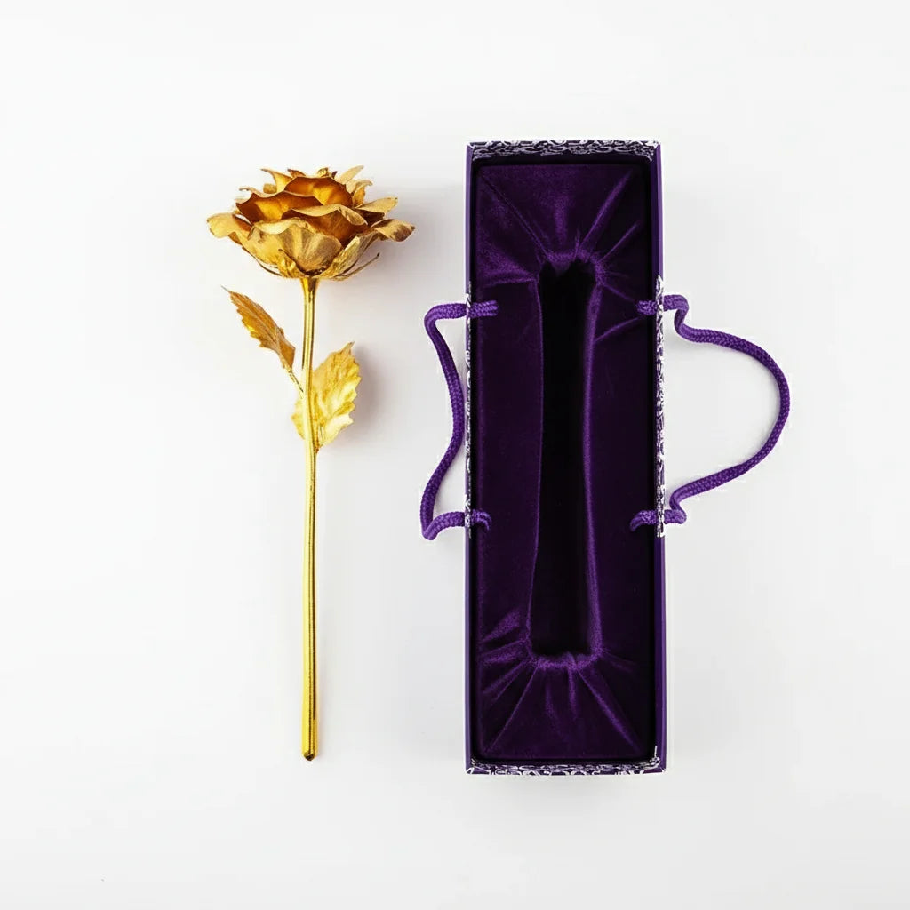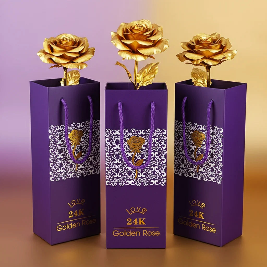 Absolutely! Each 24K Gold Rose arrives nestled in a luxurious purple gift box with intricate designs, ready to present. It’s designed to make an immediate, breathtaking impression on your loved one.